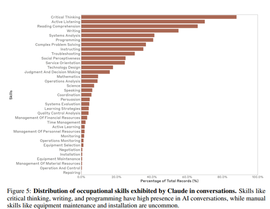 Añado otro estudio reciente que analiza las 35 aptitudes básicas y transversales https://assets.anthropic.com/m/2e23255f1e84ca97... las veces que ha aparecido en las conversaciones con Claude. Si os fijáis en la imagen, el cps está en séptimo lugar.